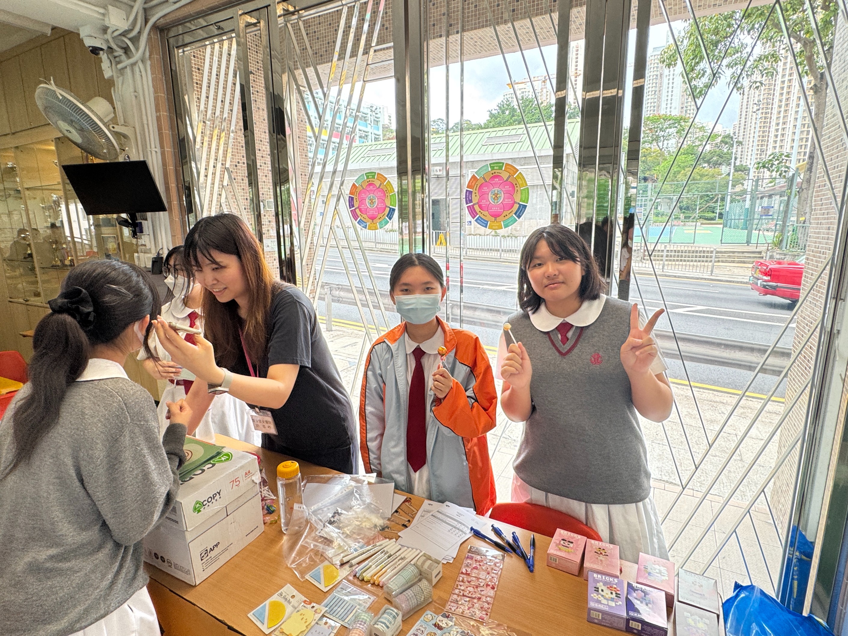 Students participated in a series of self-growth workshops and showcased their learning outcomes during lunchtime. They designed a game booth where participants used their senses: visual to spot differences in pictures, auditory to guess song titles, taste to distinguish different flavors, olfactory to smell flowers, and tactile to identify objects. Through various sensory stimuli, students were encouraged to enhance their self-awareness. The students were engaged in the activities and benefited greatly.