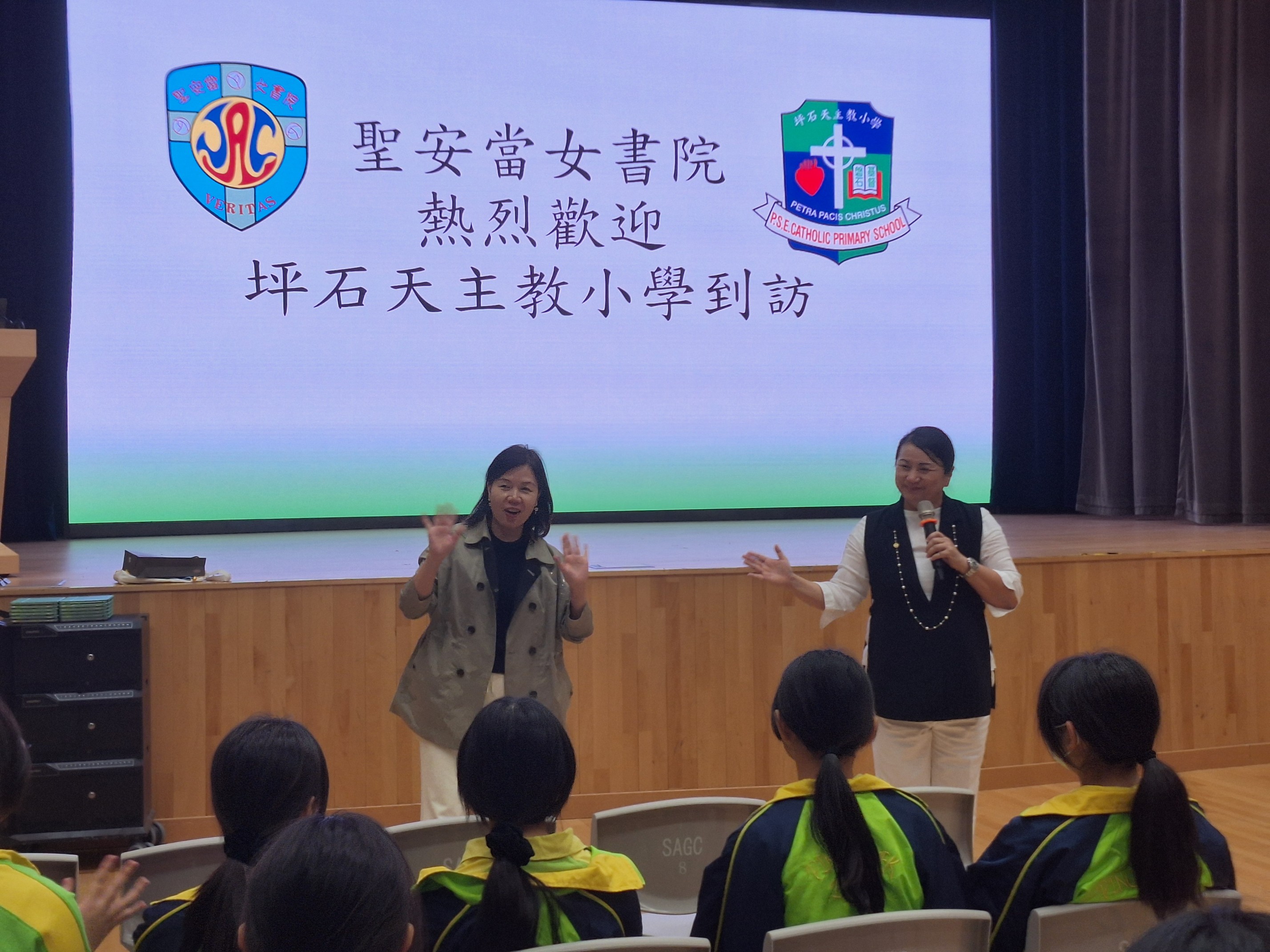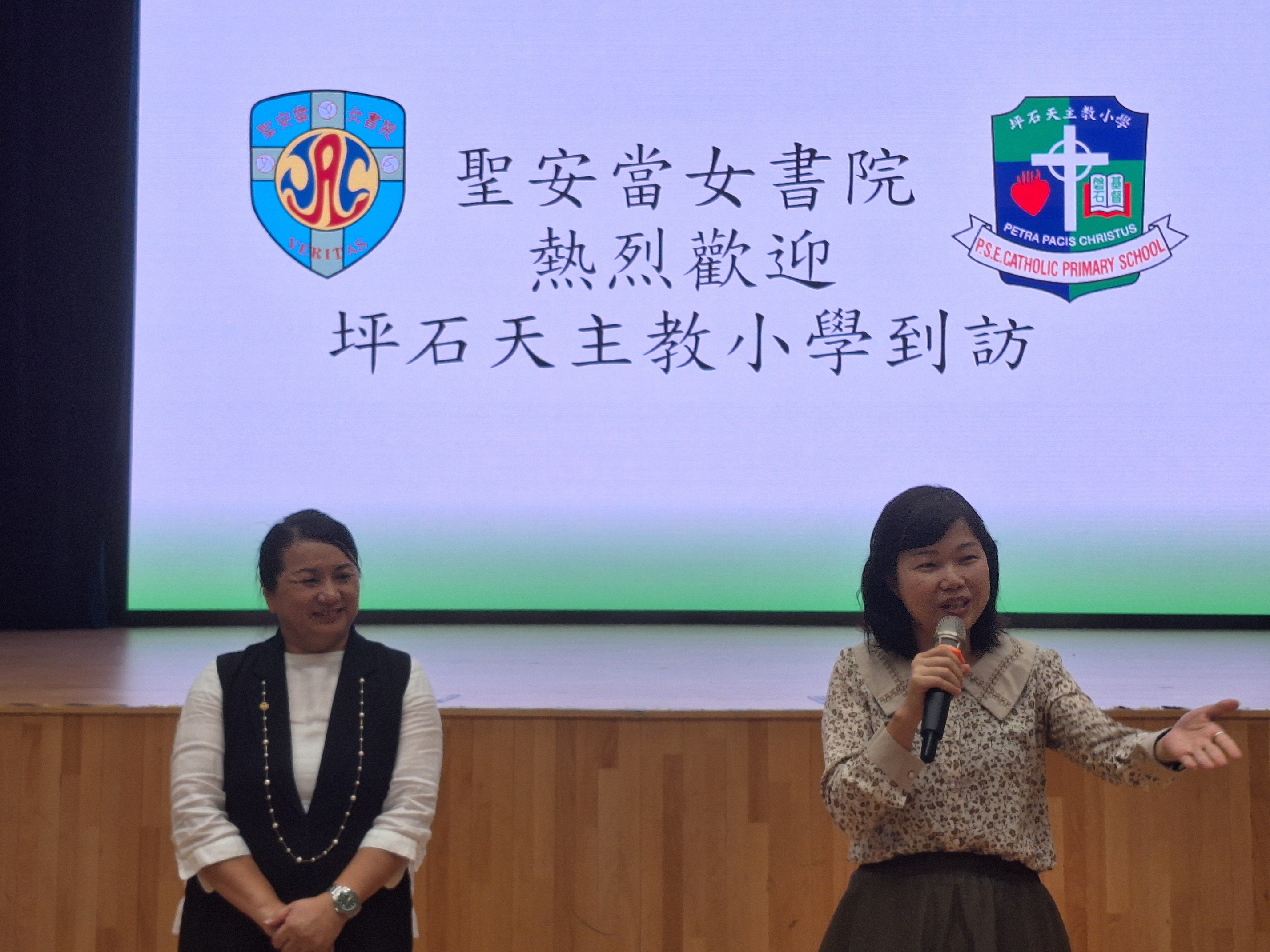 11月3日,坪石天主教小學50多位老師和學生到本校參觀。當天,同學參與不同的課堂,有科技與生活課、電腦課及宗教課,還參觀學校不同的設施,例如小聖堂、藝術長廊、水耕種植室及健身單車等,學生都表現得相當興奮和感到興趣。