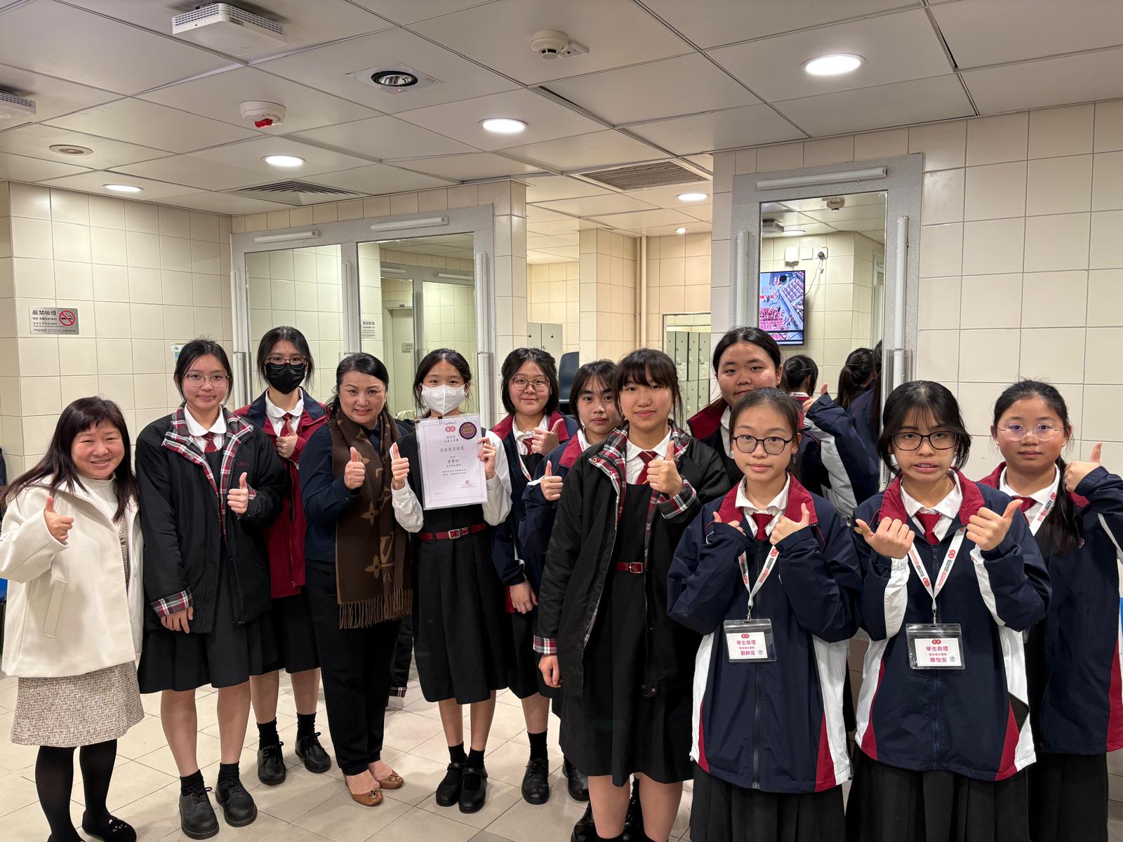 楊凱軒同學因積極參與公益活動及服務社群,獲授予一等榮譽級章,而5A曾寶怡同學則獲授予中學高級章,表彰她們傑出貢獻與服務精神,為其他同學樹立了良好的榜樣。