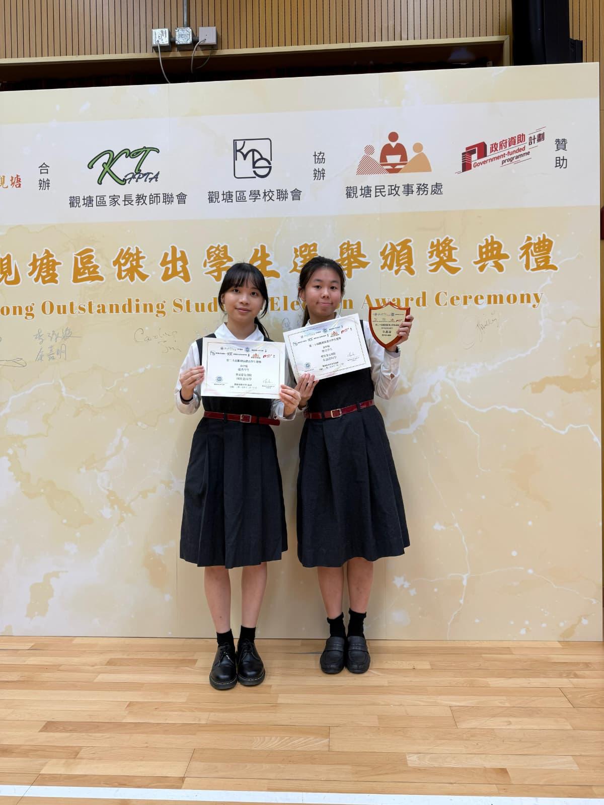 We are delighted to announce that two of our nominees received high honours in the Senior Secondary category. Lam Hei Tung was awarded the Distinguished Students Award (優秀學生獎), while Chu Ka Ying earned the Outstanding Students Award (傑出學生獎), receiving both a certificate and a trophy.