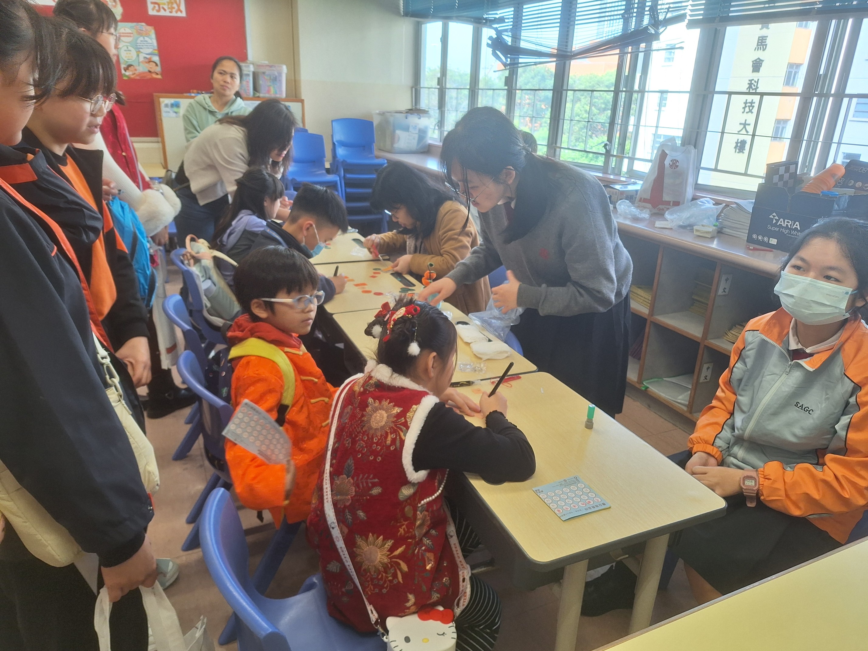 2月6日,本校參加油蔴地天主教小學(海泓道)迎新春嘉年華,向其他學校的學生、家長和老師介紹本校在科技生活科和STEAM科的特色和成就,以及製作賀年飾物。他們對本校的紡織印刷和水耕種植十分感興趣,並向本校的學生大使查詢相關資訊。